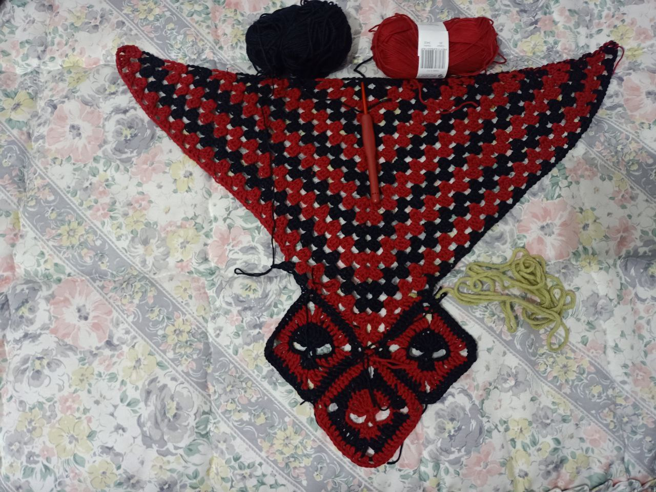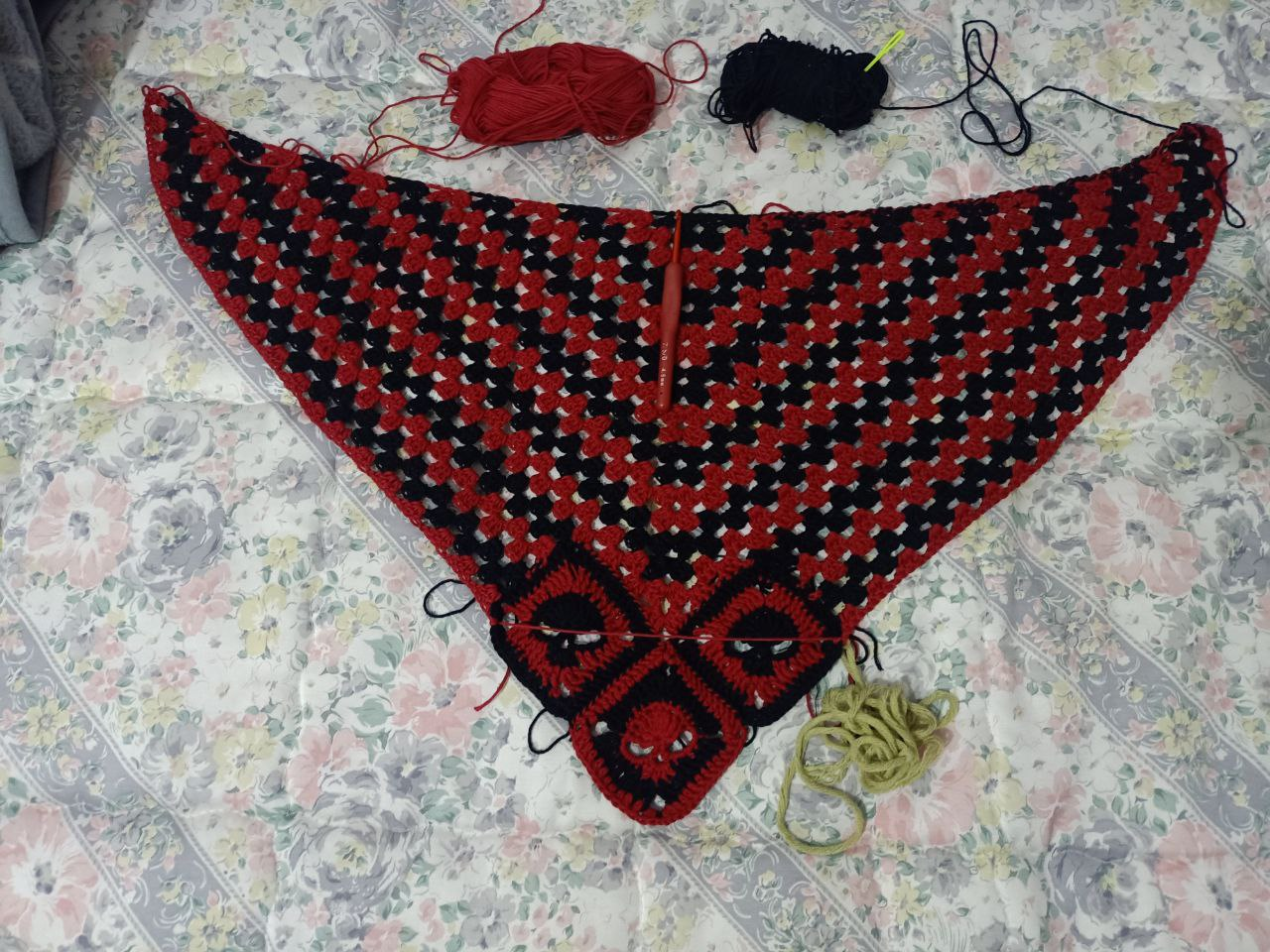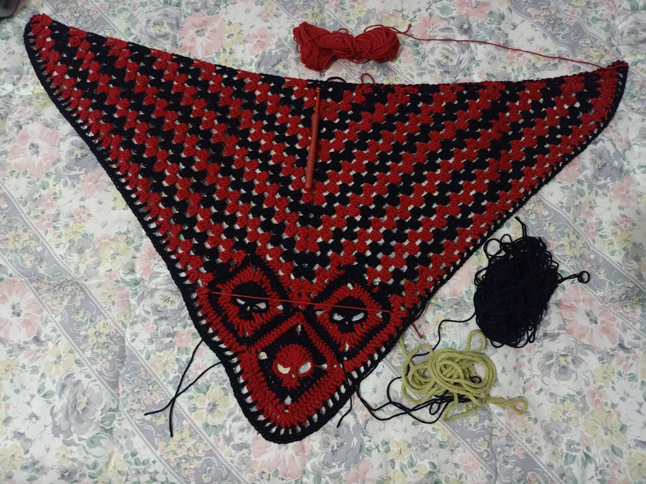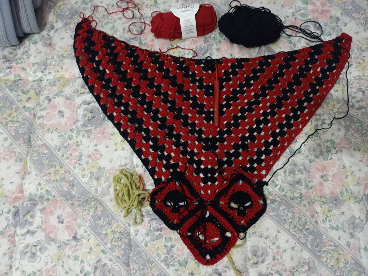 Bueno, pues ya he recubierto los cuadrados, ya están las calaveras de la abuela integradas, hora de ir terminando el emoñuelo.