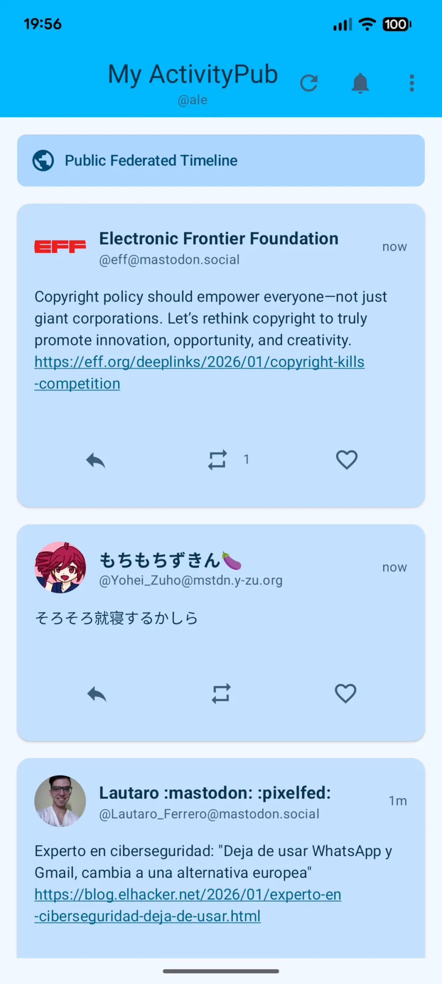 Como no me gusta ninguna app de #Android para #ActivityPub o Mastodon me he hecho una app en kotlin que he llamado My ActivityPub, he dejado el apk subido a mi servidor y el código publicado.