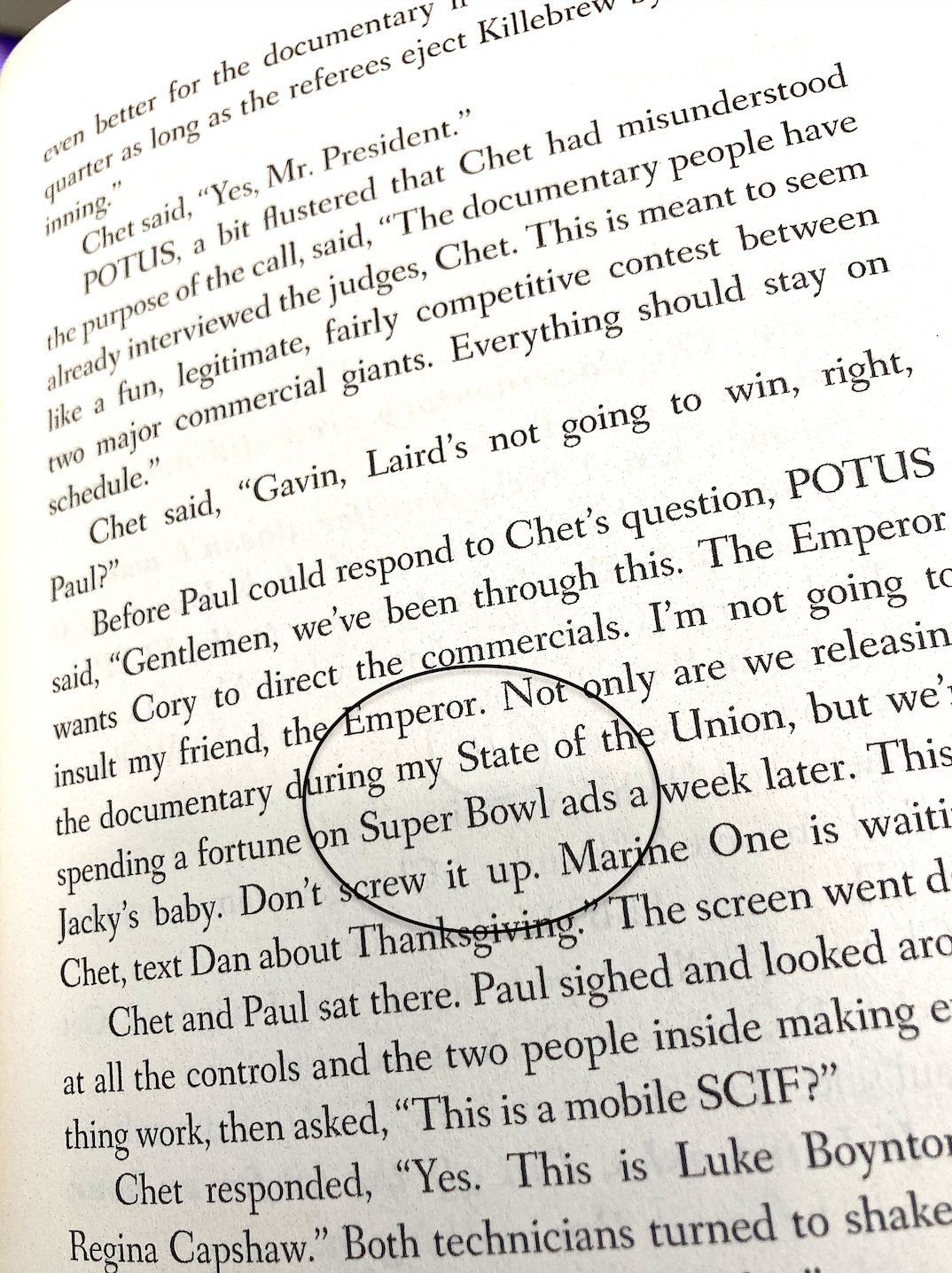 A page from BEER POUR. Even the fictional POTUS in BEER POUR knows the importance of Super Bowl ads. #advertising #ad #ads #beer #superbowl2026 #mastodon #books #bookstodon