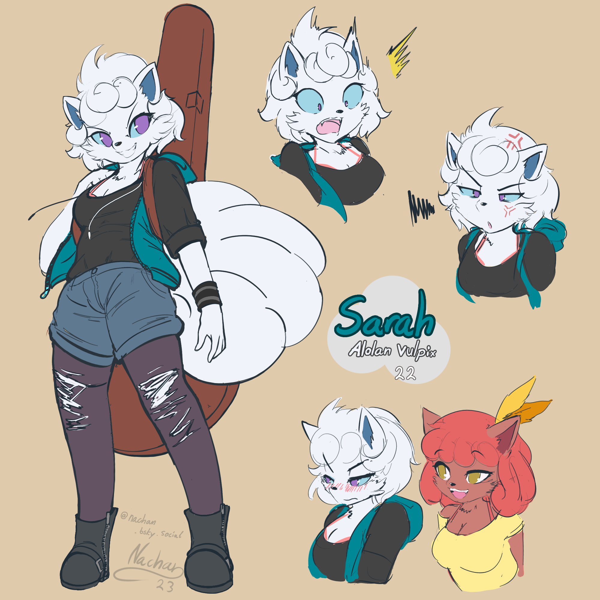 I have lots of characters, and am working on moving them off of Toyhouse and onto my own personal wiki. My fursona's ref + an alt text description is attached to this post.