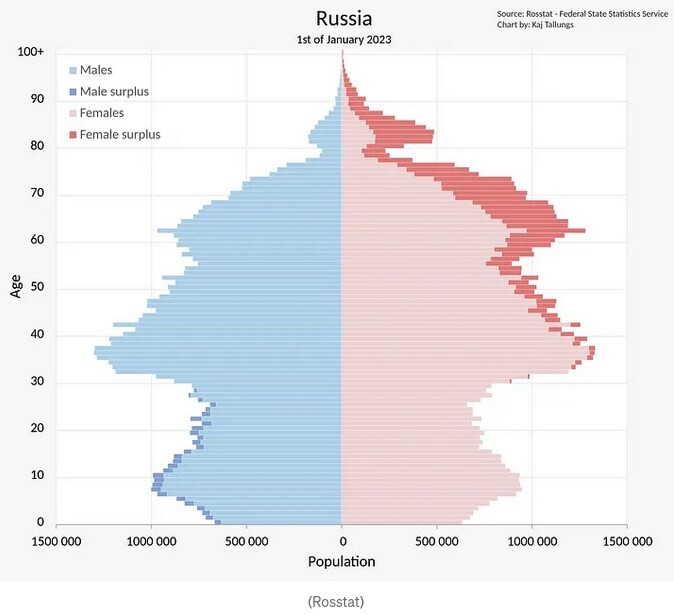 Pirámide poblacional de #Rusia 🇷🇺 (2023)