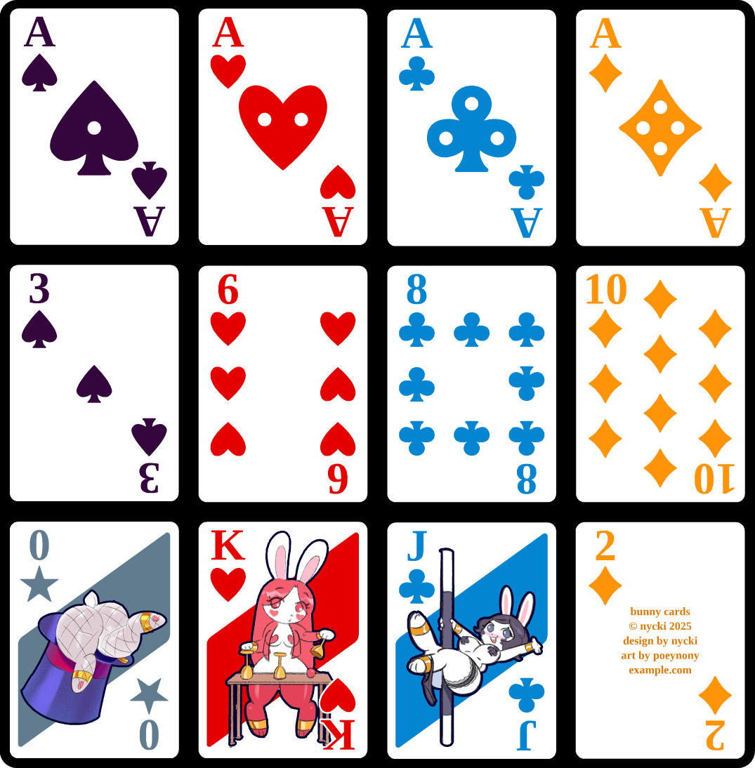 Reminder that if you want a deck of cards with bold colors and sexy bunnies, please email me at nupanick@gmail.com with the subject line "Bunny Cards" so I can put you down for a future bulk order when Poeynony and I have finished the art :3