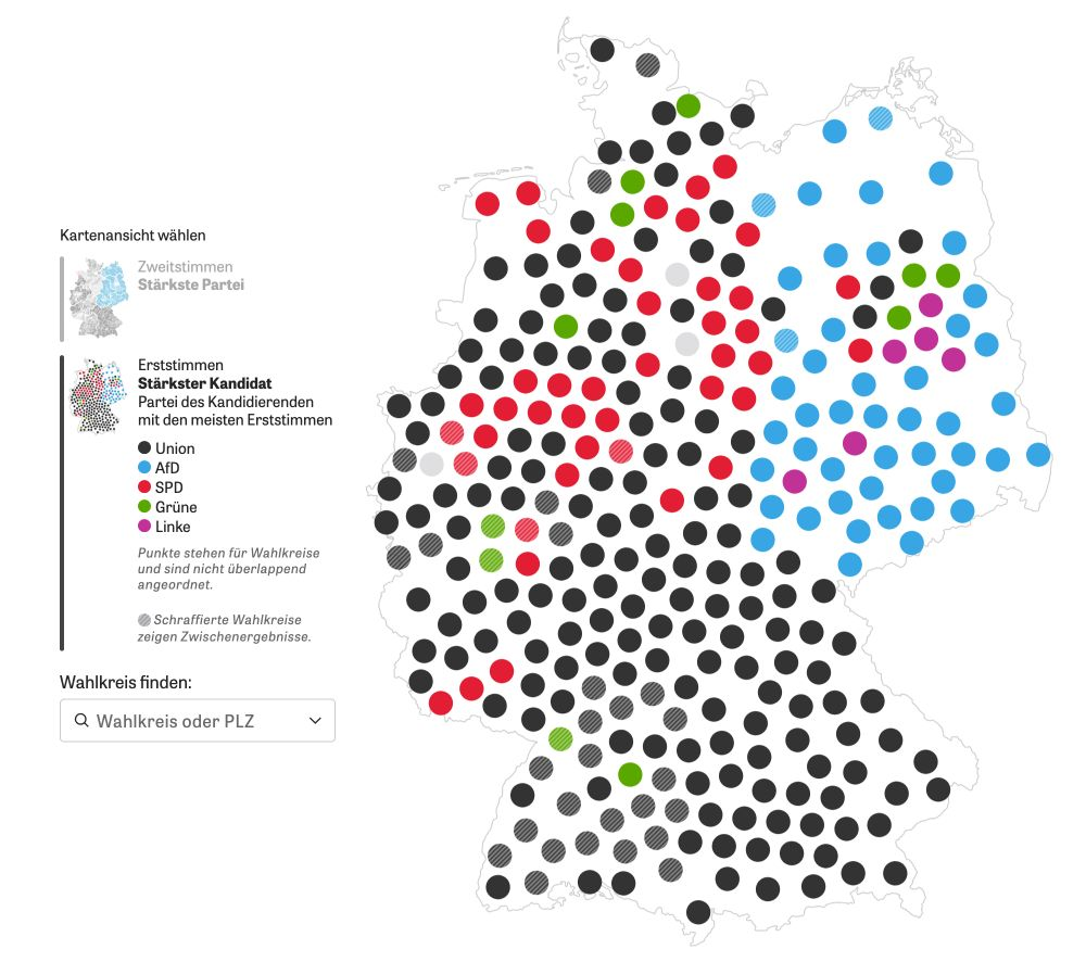 For the German election we wanted to use a cartogram of election districts but didn't find anything good, so we created our own. Here's a little nerd thread how the final algorithm worked 🤓 🧵 #gis #cartogram #election #datavis #cartography