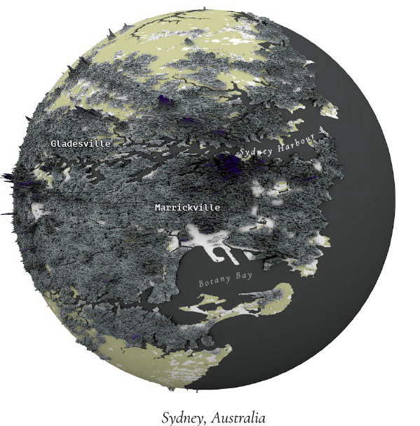 It’s cool when you pause to think about the conclusions you can get from these views. For example, look at how little green area there is in most of these big cities, with a few exceptions https://bit.ly/mh-maps #cartography