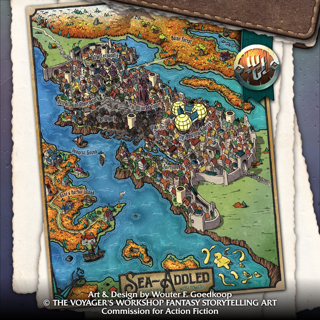Work in progress on the Sea-Addled city map for Monsters of Murka by Action Fiction . It seems as though I have been making many city maps over the last year or so!