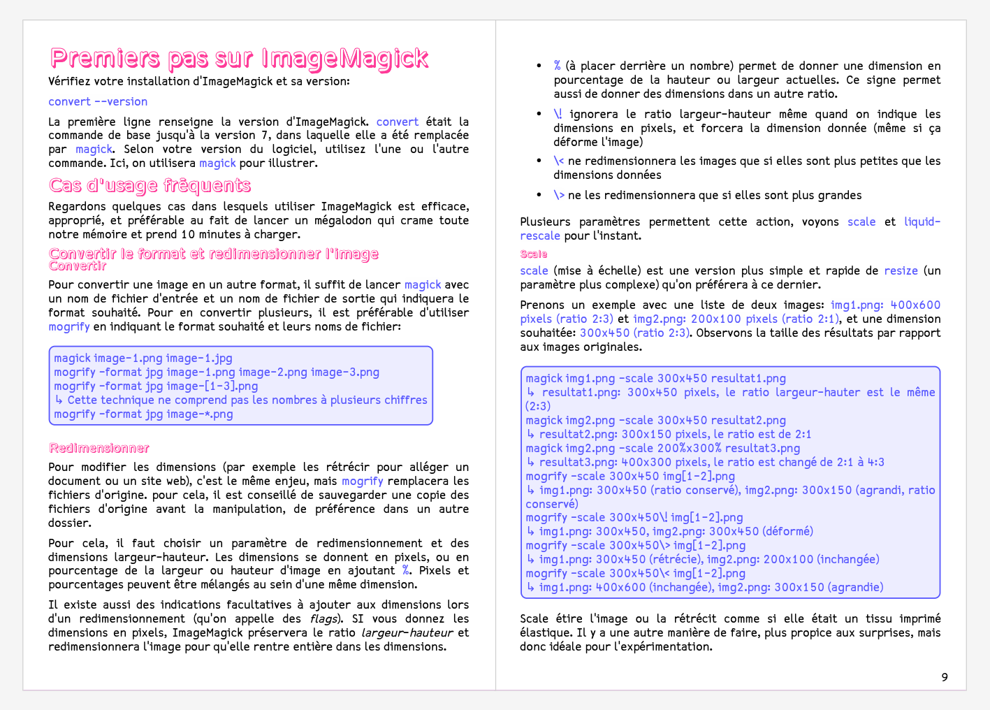 C'est une première lancée de mise en page pour le premier zine tutoriel #ImageMagick . J'y couvre les premiers pas, les commandes de base, quelques cas d'utilisation fréquente, ainsi que les principes de l'enchaînement de paramètres.