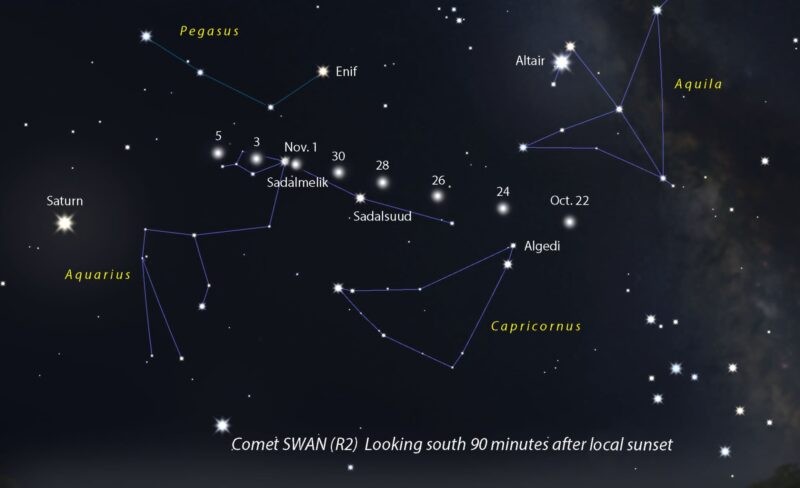 https://www.ufofeed.com/210923/new-comet-c-2025-r2-swan-is-up-after-sunset/ New comet C/2025 R2 (SWAN) is up after sunset #Comet #Comets