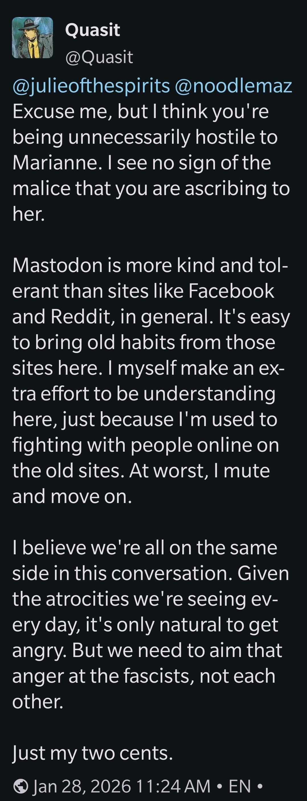Someone was getting mean here to someone else, so I tried to appeal to the better angels of their nature.