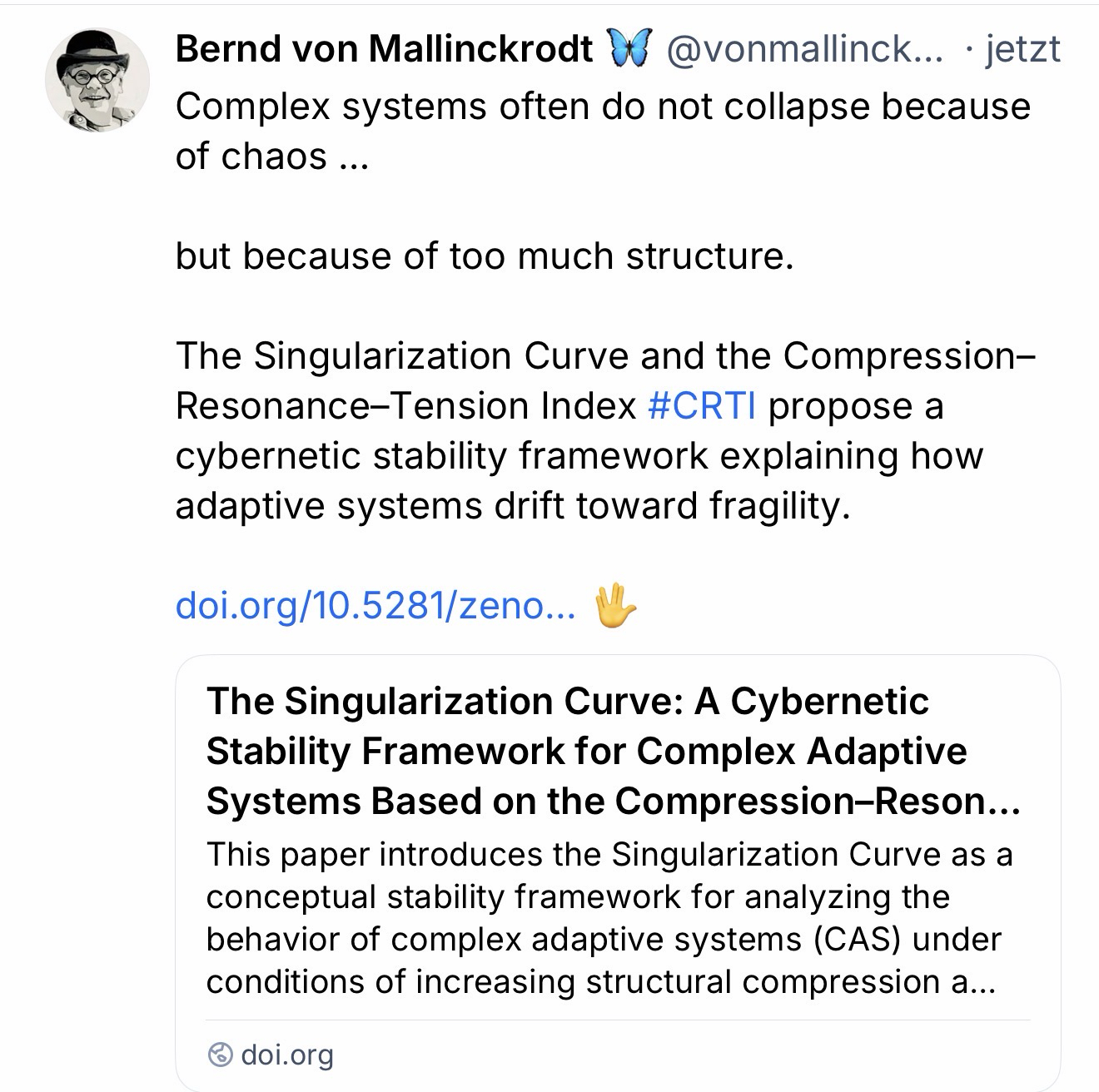 When a #DigitalPlatform #bluesky #Twitter #Facebook #Instagram reaches the critical point between resonance and compression, is the next step growth… or the quiet beginning of decline?#Mallinckrodt-Zyklus#CRTIdoi.org/10.5281/zeno... 🖖