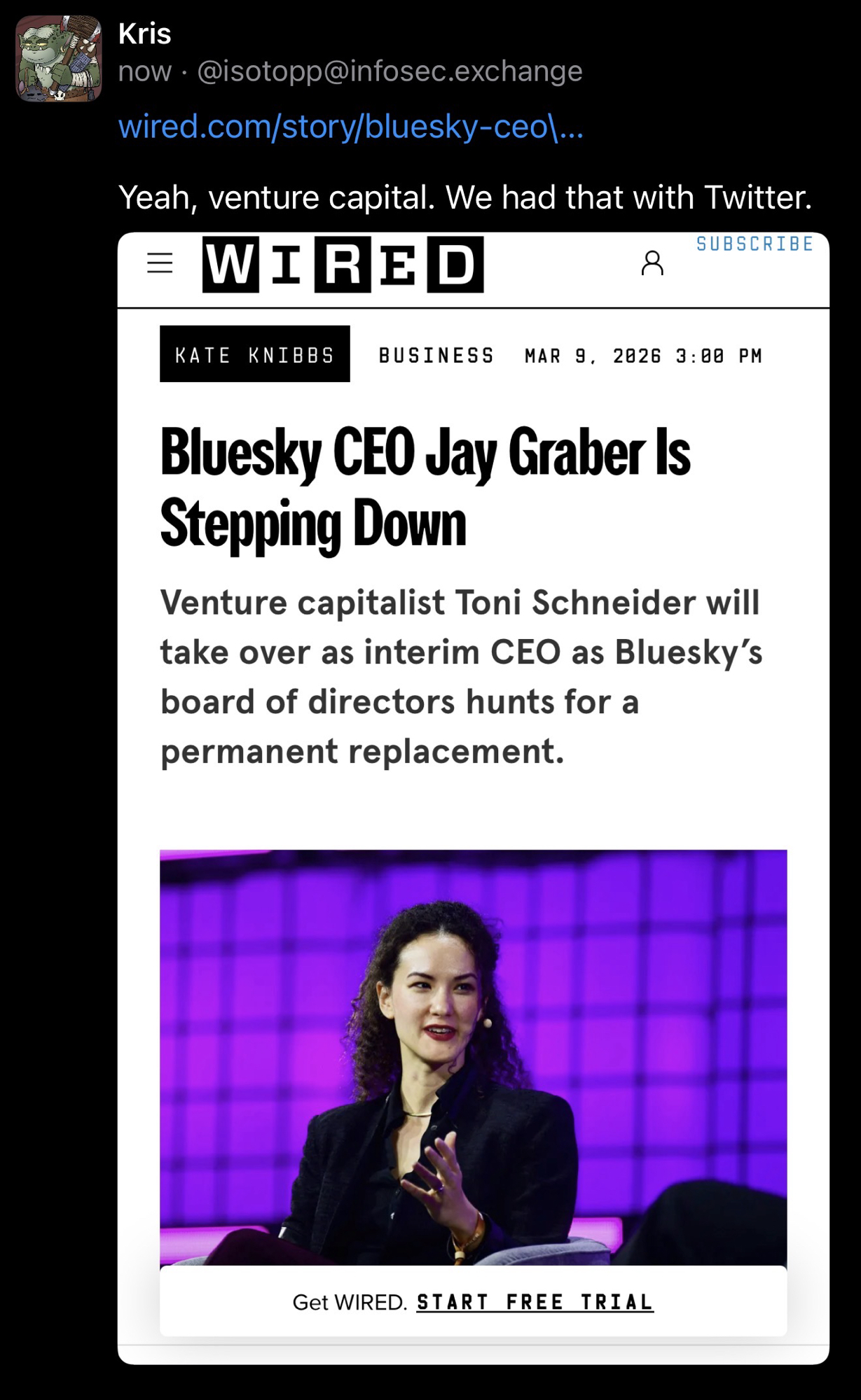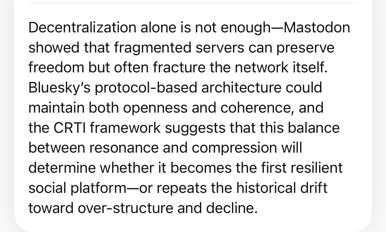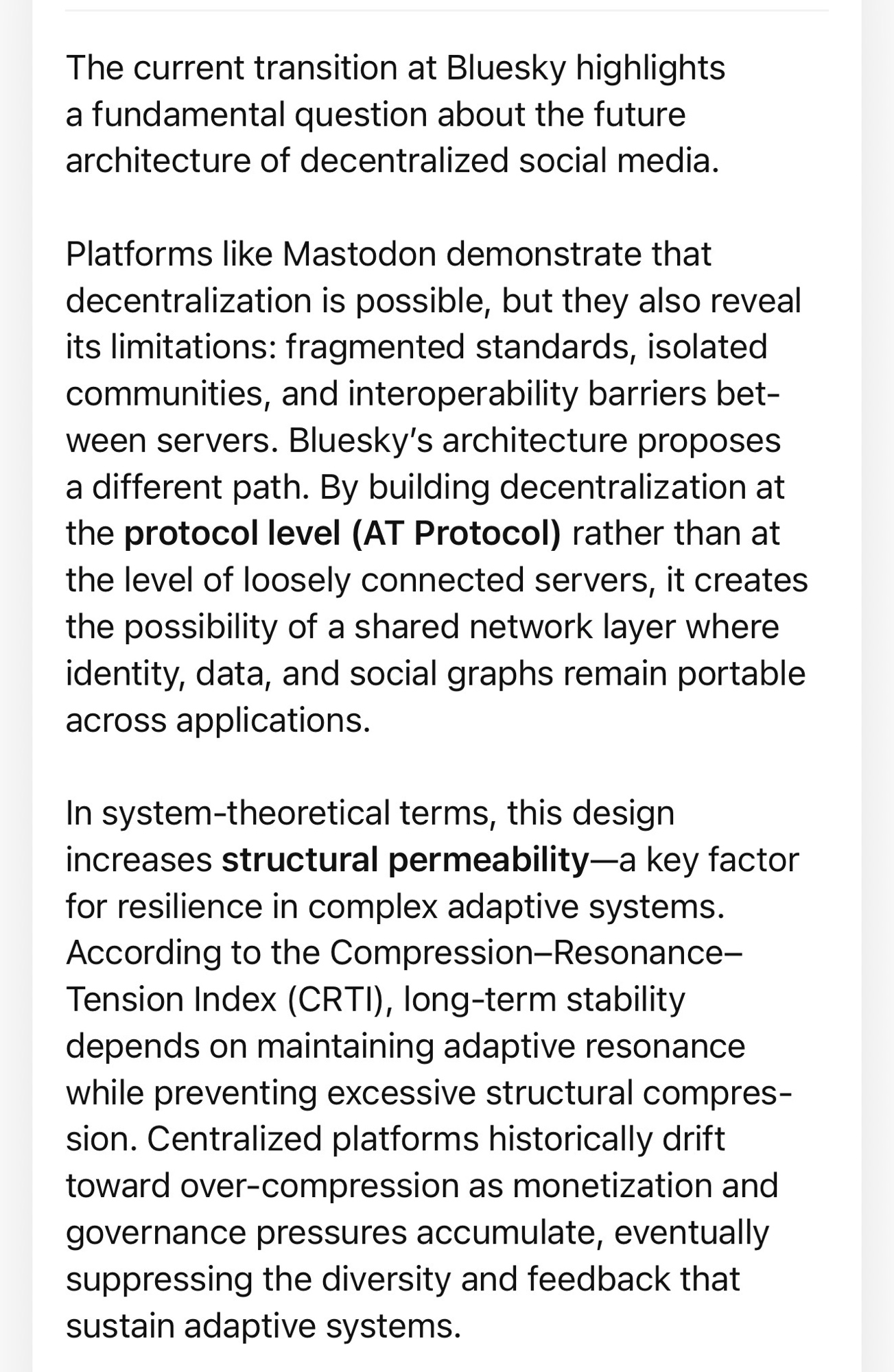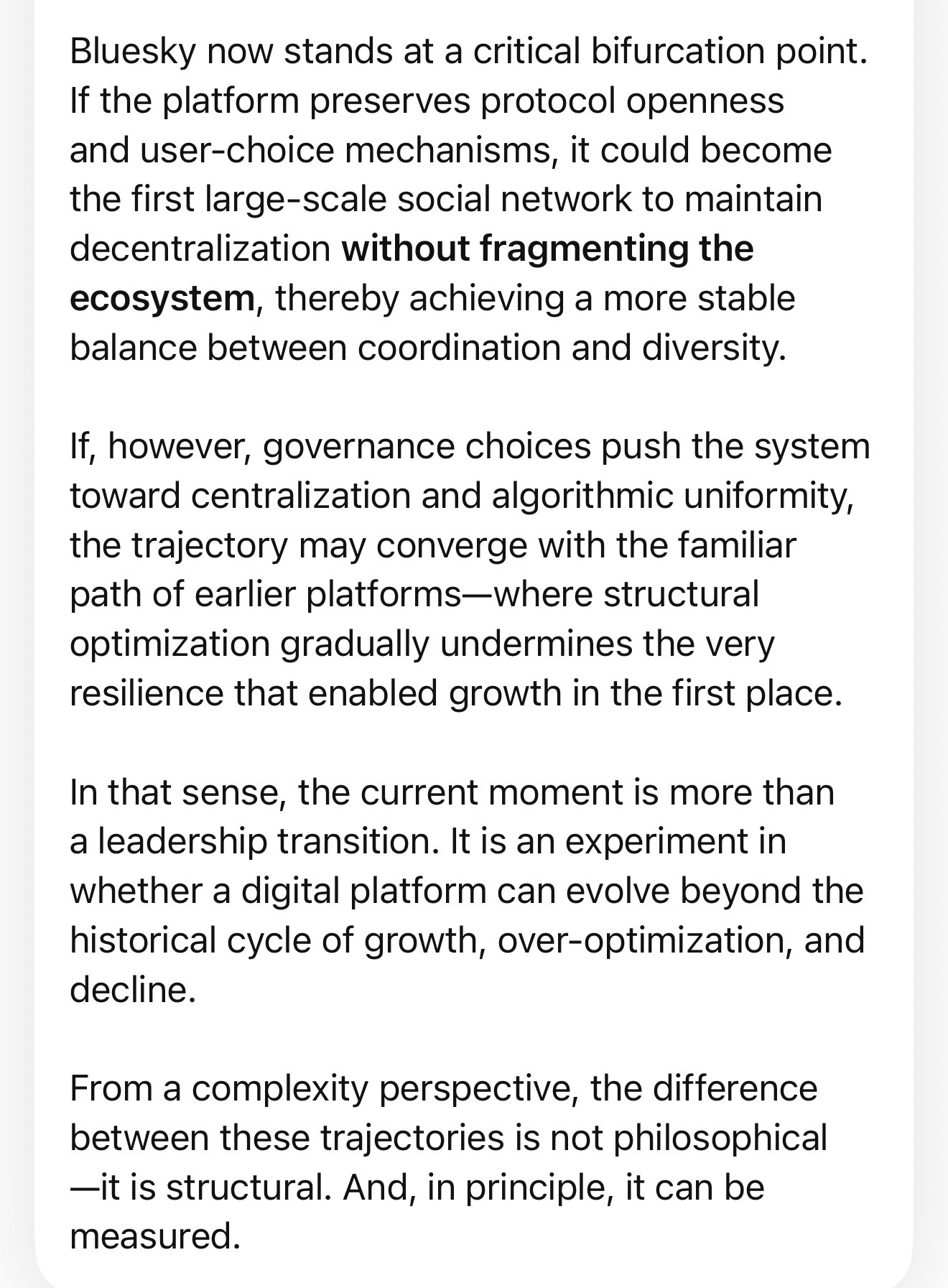 With new leadership, #blueskymay be approaching a critical moment in the lifecycle of digital platforms.Will it follow #Twitter and #Facebook toward structural over-compression and singularization …or become the first platform to balance #InvestorPressure&community resonance? #CRTI 🖖