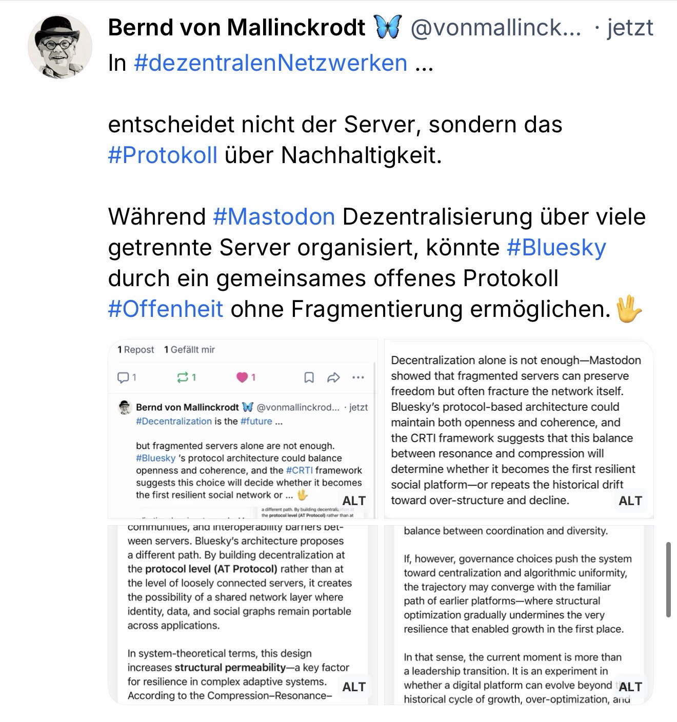 Wenn #SocialMedia ein #System ist, das Ideen nach Resonanz filtert …wer trennt dort Signal von Lärm …Macht, Gewohnheit oder Erkenntnis?Und zeigt sich die Adaptionsfähigkeit eines Netzwerks vielleicht genau dort, wo Irritation nicht sofort unterdrückt wird? #CRTI 🖖