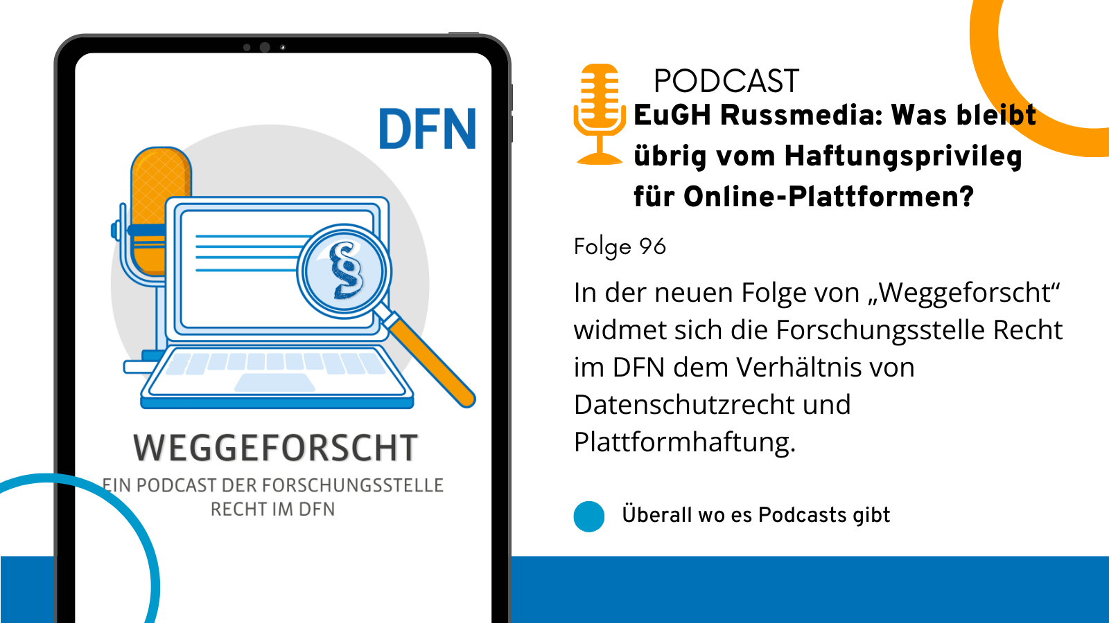 🔎In Folge 96 geht es um das Verhältnis von #Datenschutzrecht & #Plattformhaftung. Anlass ist das EuGH-Urteil „Russmedia“: Wie die Entscheidung begründet wird, warum es Kritik aus der Literatur gibt & welche möglichen Folgen die Entscheidung hat, erklärt Euch die Forschungsstelle Recht #DFN!