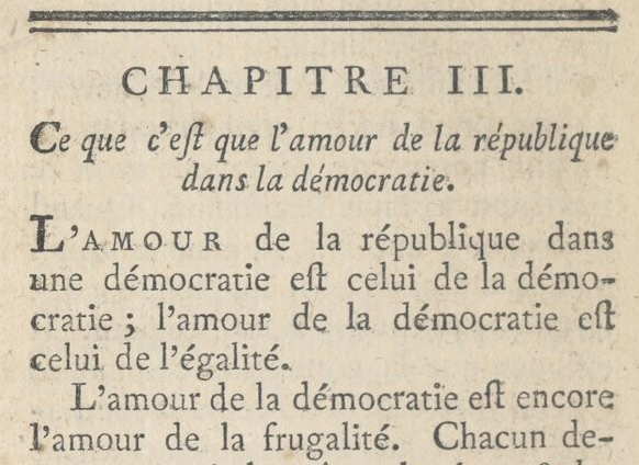 ✏️ « l’amour de la démocratie est celui de l’égalité. L’amour de la démocratie est encore l’amour de la frugalité. » MONTESQUIEU, De l'esprit des lois, 1748