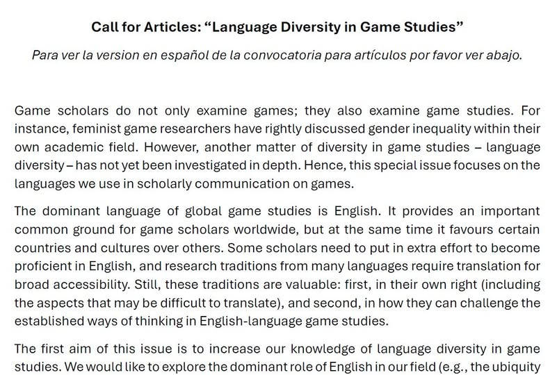 More information: http://stanislawkrawczyk.pl/wp-content/uploads/2025/04/CFP-Language-Diversity-in-Game-Studies.pdf