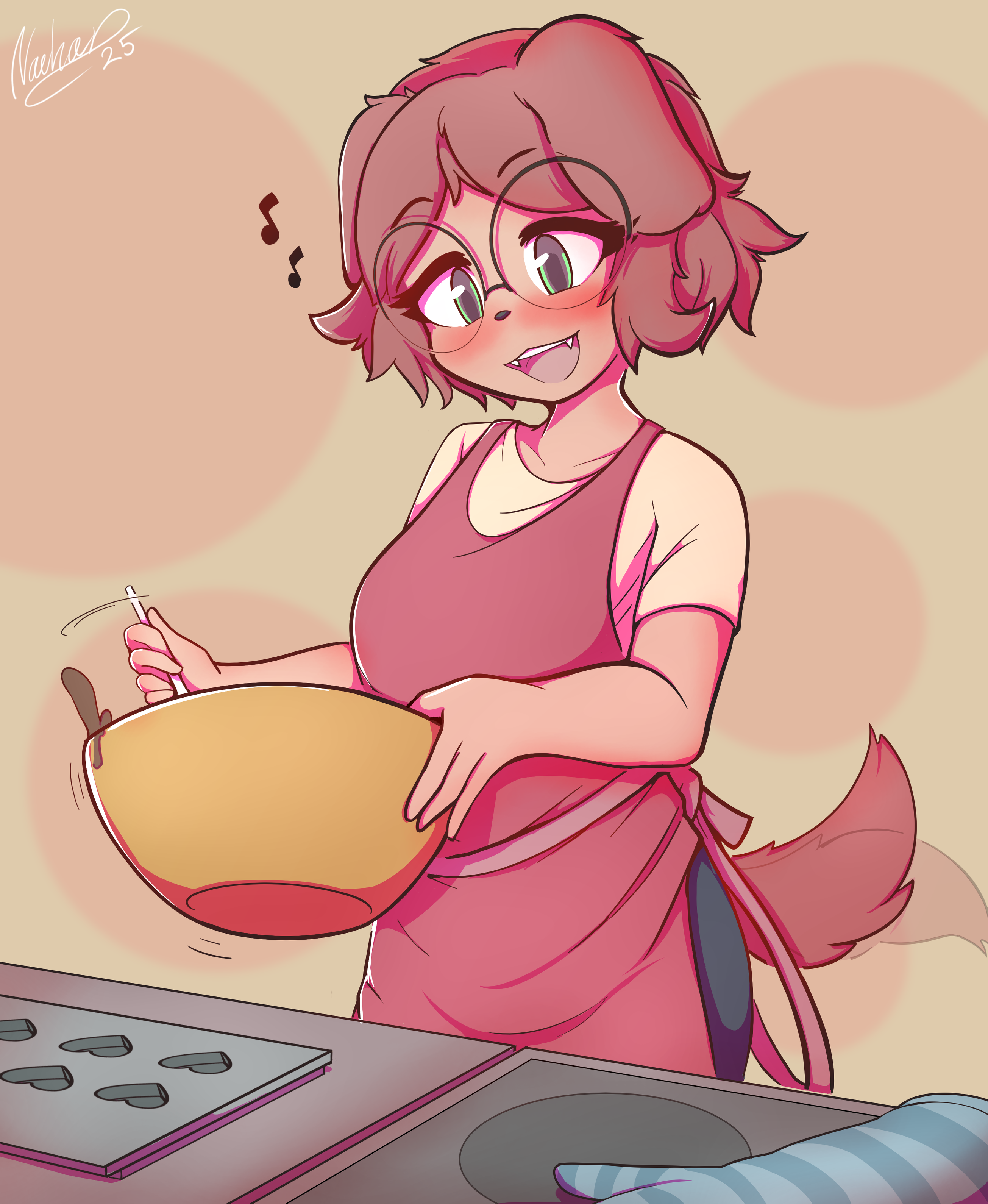 #female #anthro #furry #cooking #baking #chocolate #valentine #valentines_day #valentinesday #blushing #dog #oc #original_character #originalcharacter