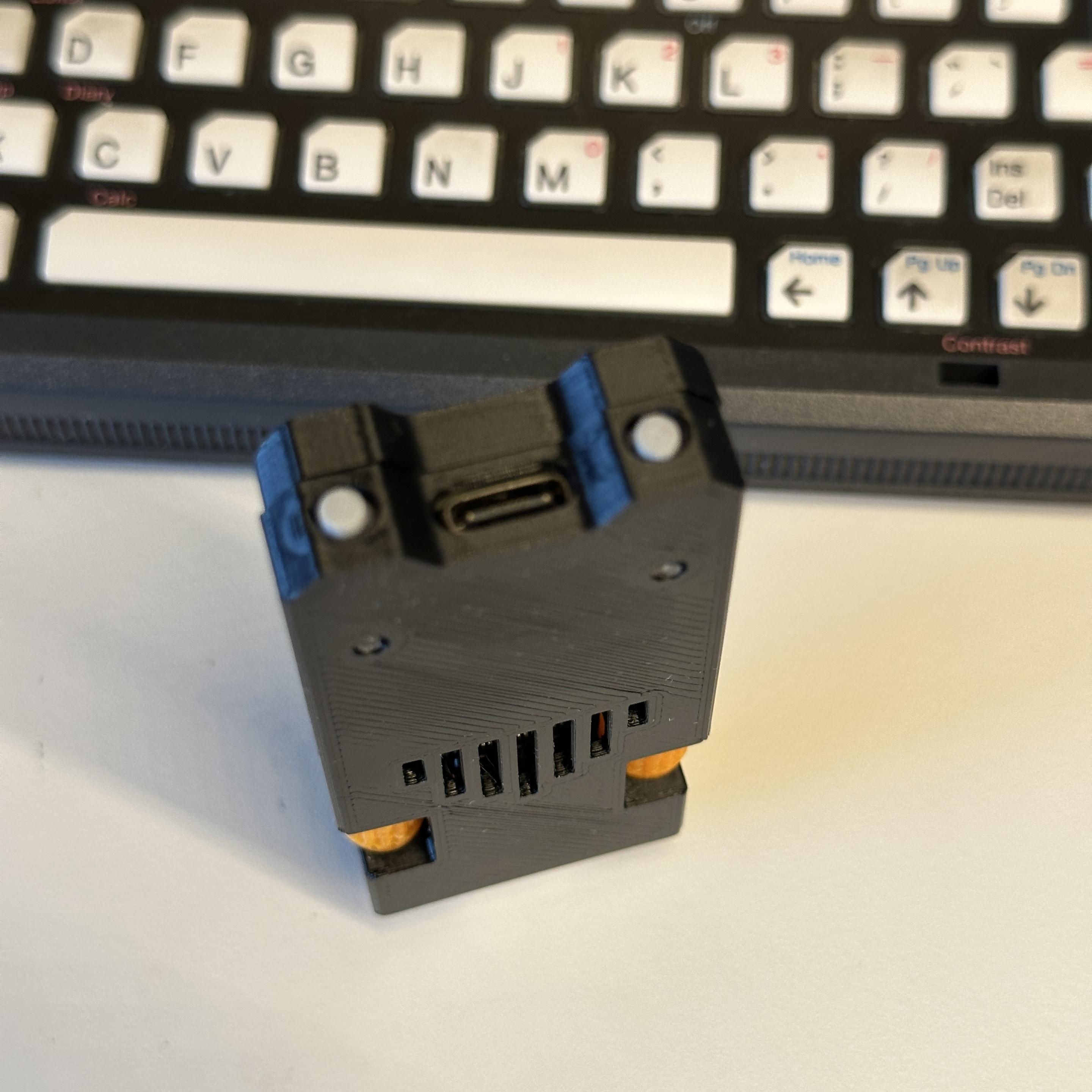 Made a cartridge for the #FujiNet #PicoROM prototype. All data is transferred over the bus, it doesn't plug into the serial port in the back of the CoCo. As a prototype it's still missing things and has to be plugged into a computer which is what the USB-C connector is sticking out of the top. #RaspberryPiPico #RetroComputing #VintageComputing #TRS80CoCo