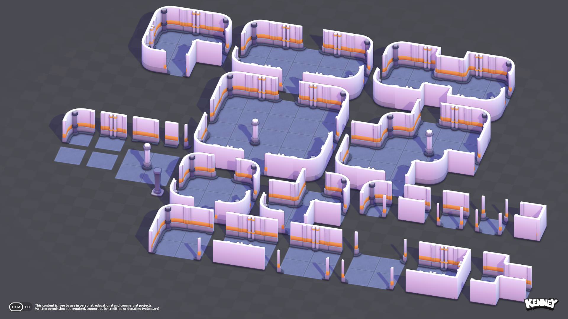 Quick preview of the modular sci-fi kit which will release on Sunday, for free. It's the first time I've included a texture (for the floor) in my 3D #gameassets and it really makes a difference, it'll be integrated in the colormap - so it's still all 1 material/texture! 🎉