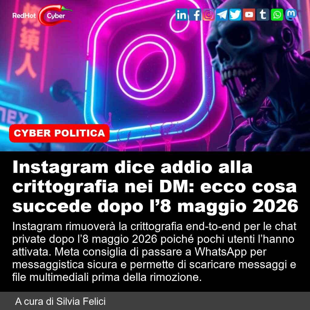 📌 Link all'articolo : https://www.redhotcyber.com/post/instagram-dice-addio-alla-crittografia-nei-dm-ecco-cosa-succede-dopo-l8-maggio-2026/