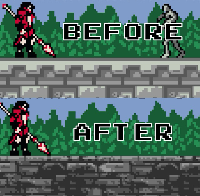 Continuing with my pixel art cleanup, you will notice that even the bridge has been redrawn.
