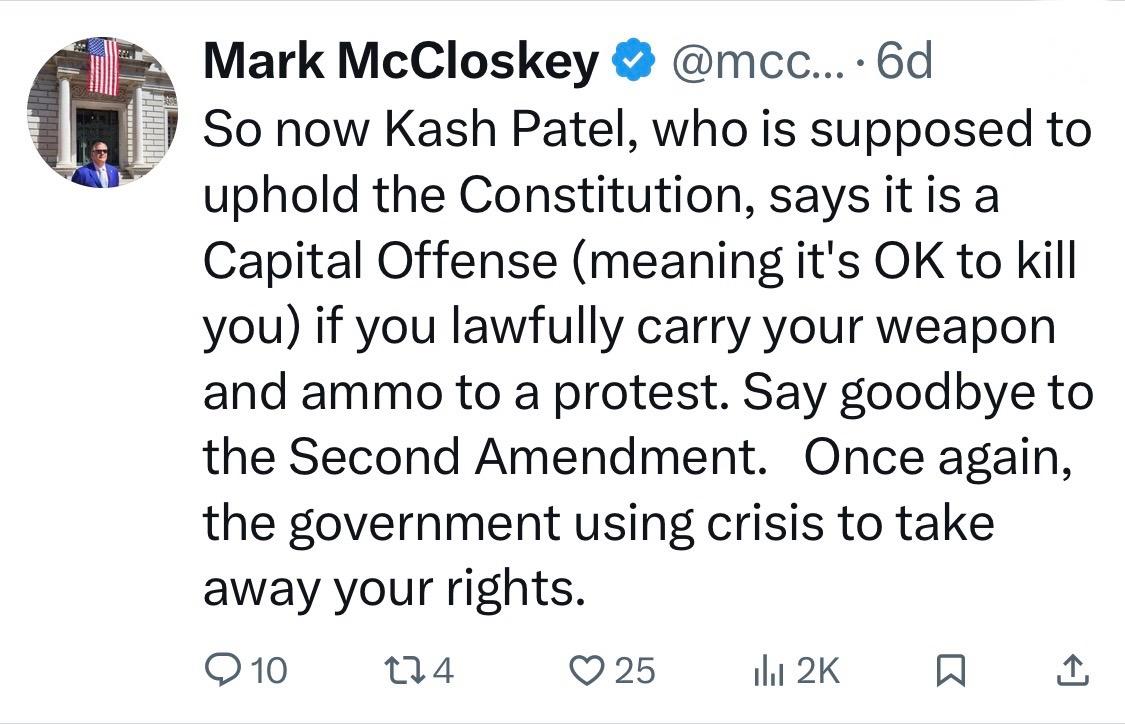 McCloskey is lawyer for the January 6 rioters, and now he thinks the Trump regime is infringing on his gun rights.