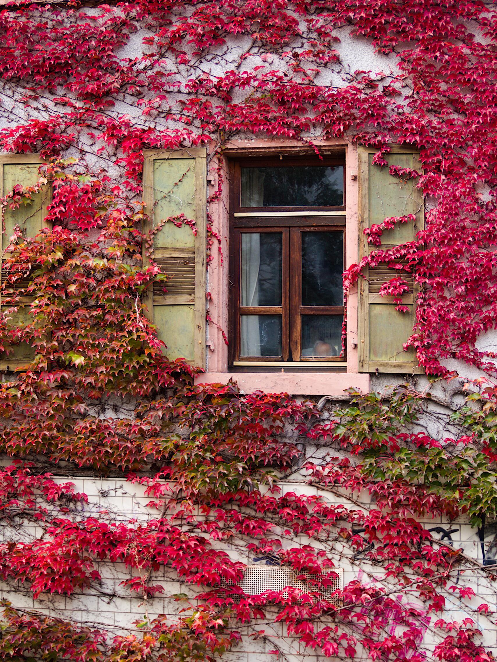Zum #fensterFreitag - ganz eindeutig #herbst wie uns dieses zweiflügelige Holzfenster umgeben von rot gefärbtem wilden Wein verrät.