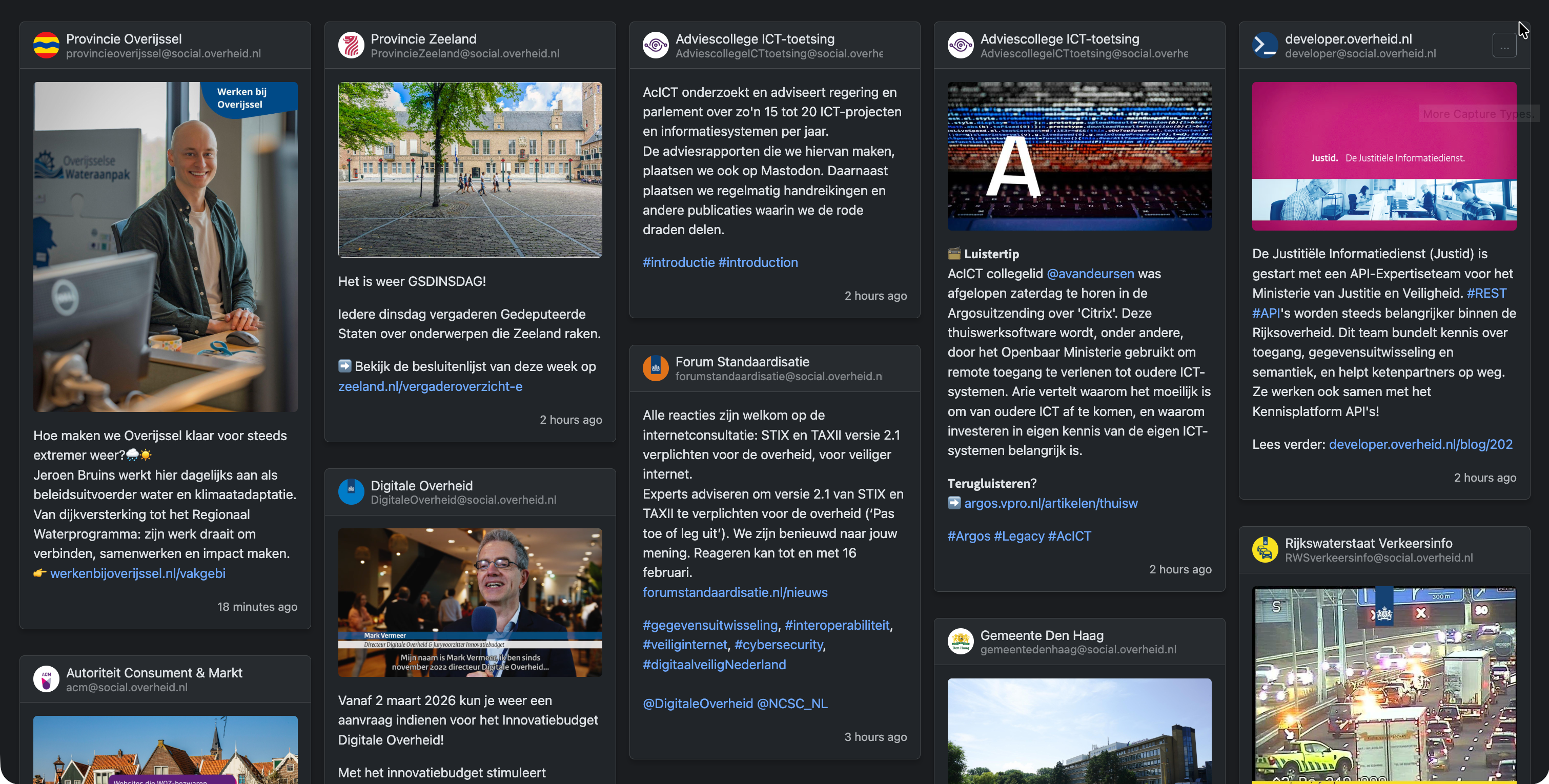 Of de berichtjes van social.overheid.nl... misschien ergens in een wachtruimte, bij de receptie of kantine?! (https://fediwall.social/?servers=social.overheid.nl&tags=&accounts=&timelines=local&limit=40)