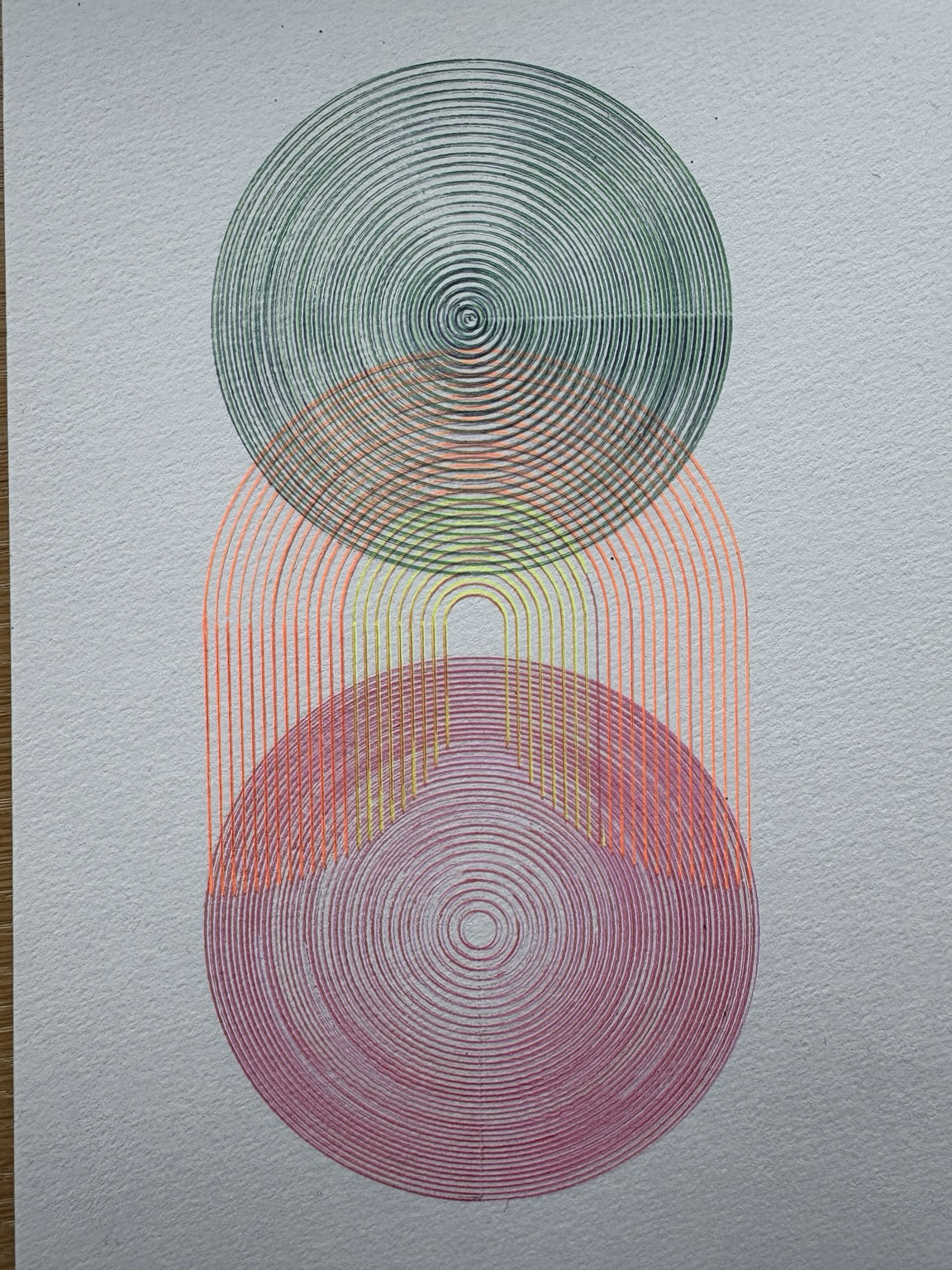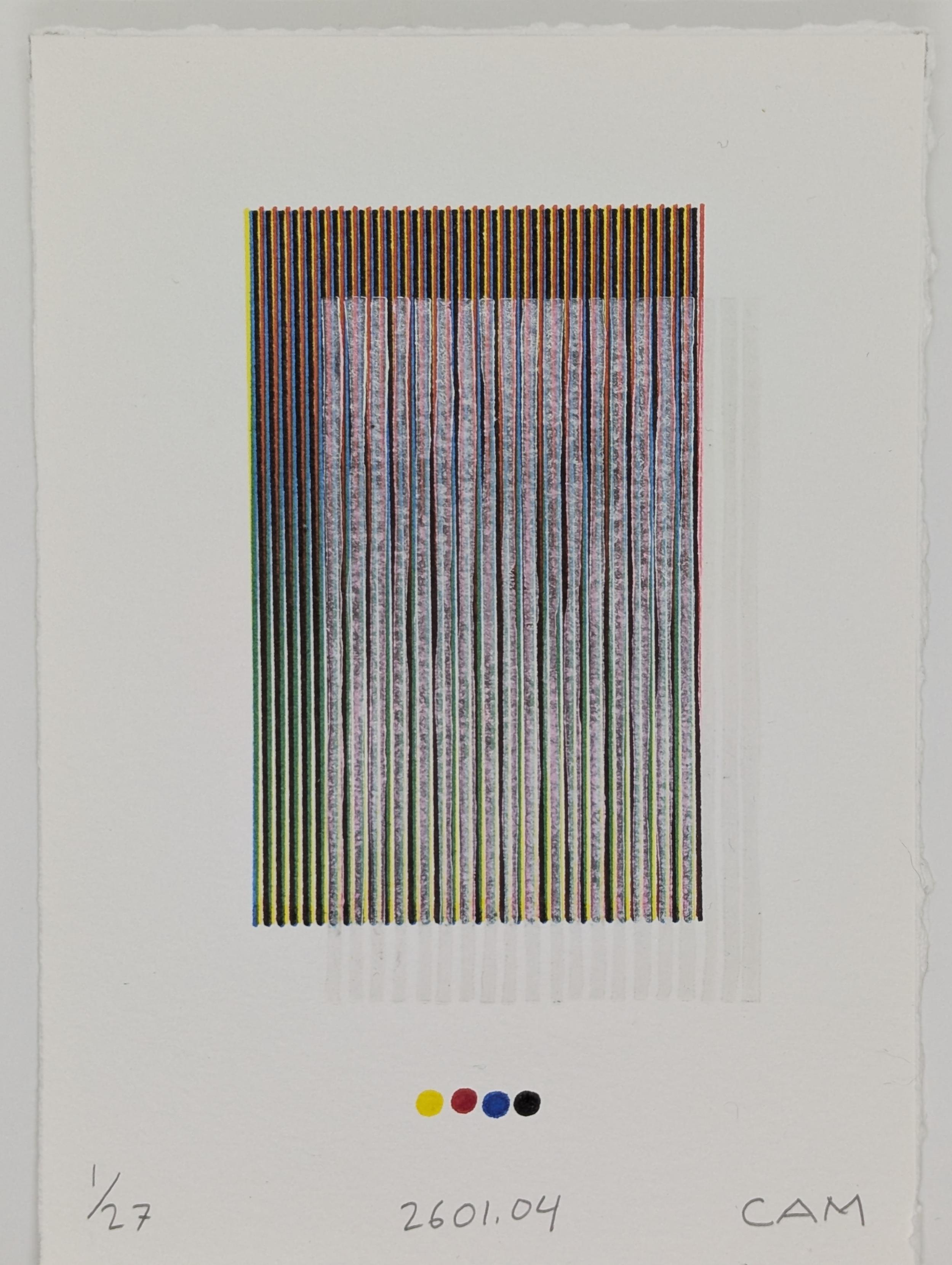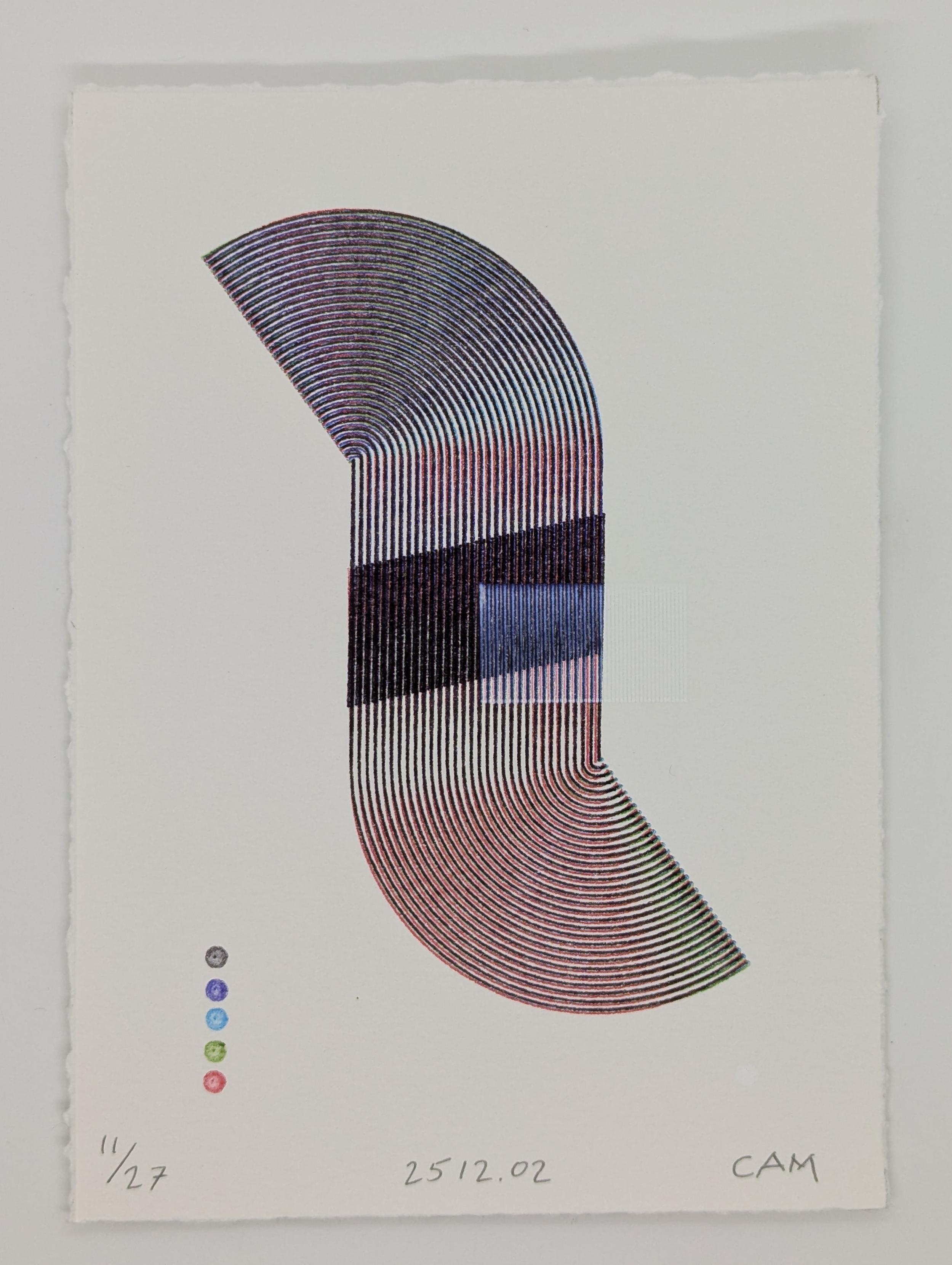 CMYK on 11”x15” watercolor paper using a vintage HP 7585B pen plotter generated and controlled with Python.