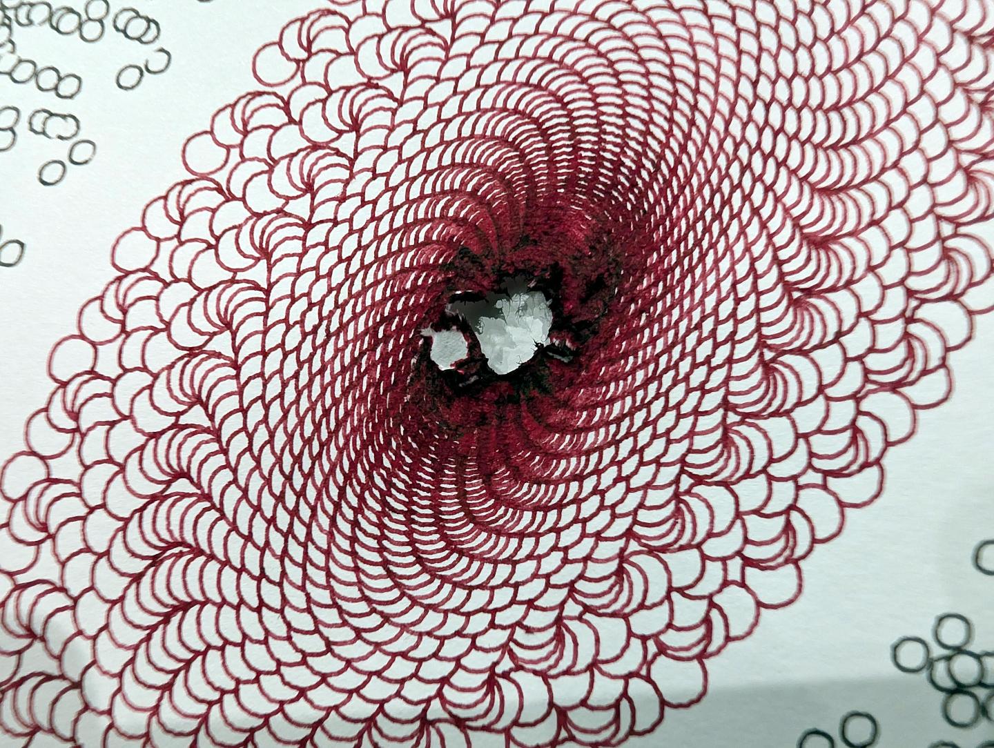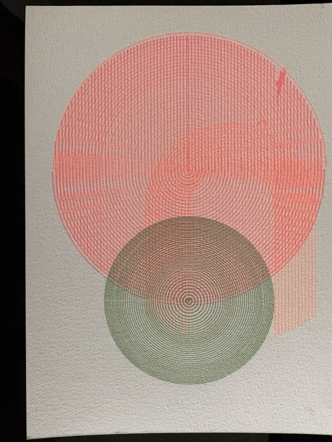 When plotting this during the residency, I was been looking at a different machine when it reached the center of the 'eyes' where the circles were incredibly dense, and it destroyed the paper. You can say I left my mark on that machine during my stay.. 😅