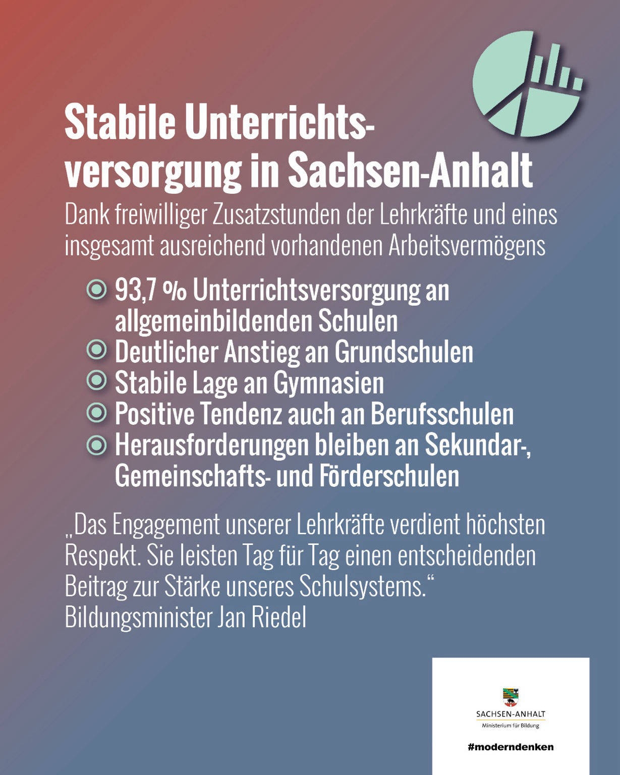 📊 Die #Unterrichtsversorgung an #SachsenAnhalt|s #Schulen bleibt stabil.