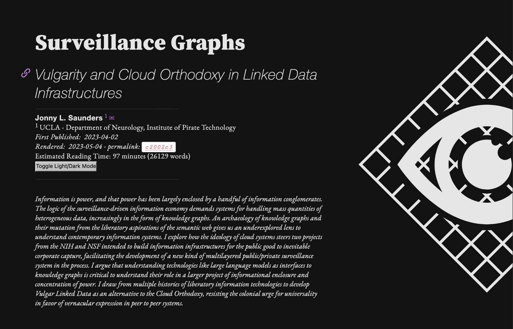 Glad to formally release my latest work - Surveillance Graphs: Vulgarity and Cloud Orthodoxy in Linked Data Infrastructures.