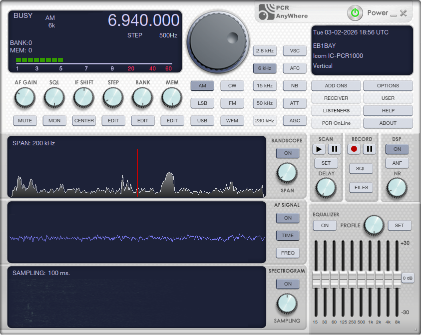 Sintonizando Studio 29 por los 6940 kHz con buena señal aunque con un poco de ruido atmosférico.