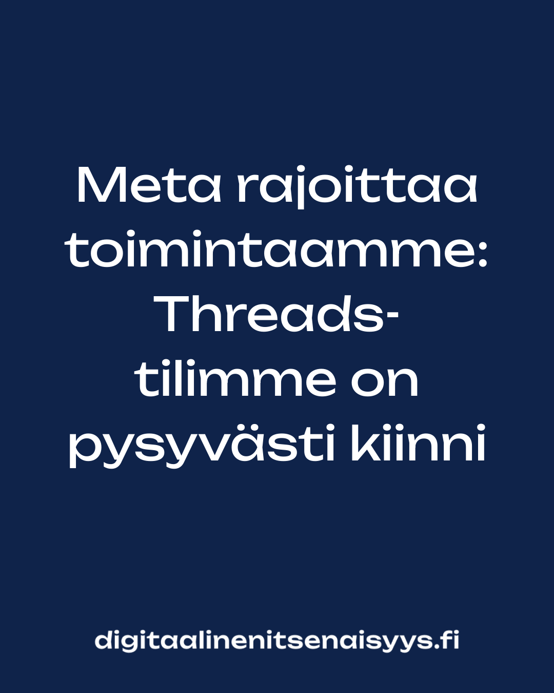 🇫🇮 Meta sulki Digitaalinen itsenäisyys -aloitteen Threads-tilin. Mitä seuraavaksi? 🤔