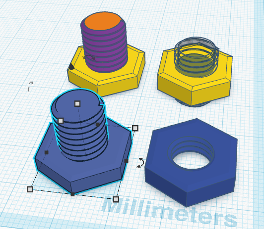 Hoy, jugando a diseñar tornillos y tuercas en #Tinkercad