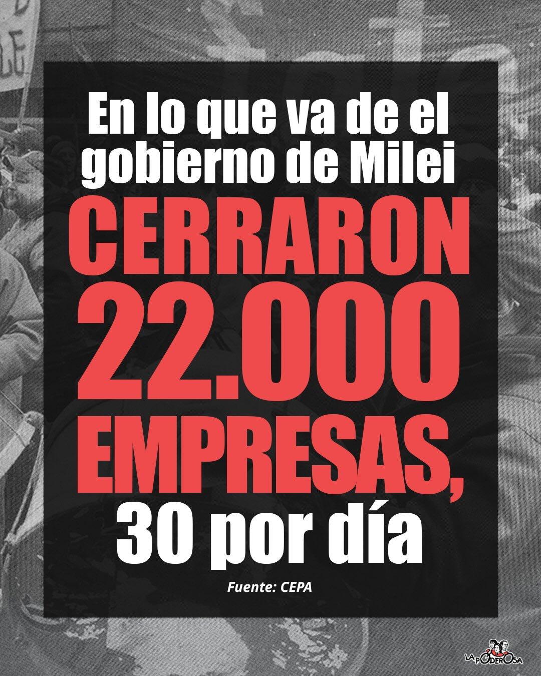 Llevamos 2 años de régimen y el balance arroja que CERRARON 22.000 EMPRESAS, es decir unas 30 empresas por día.