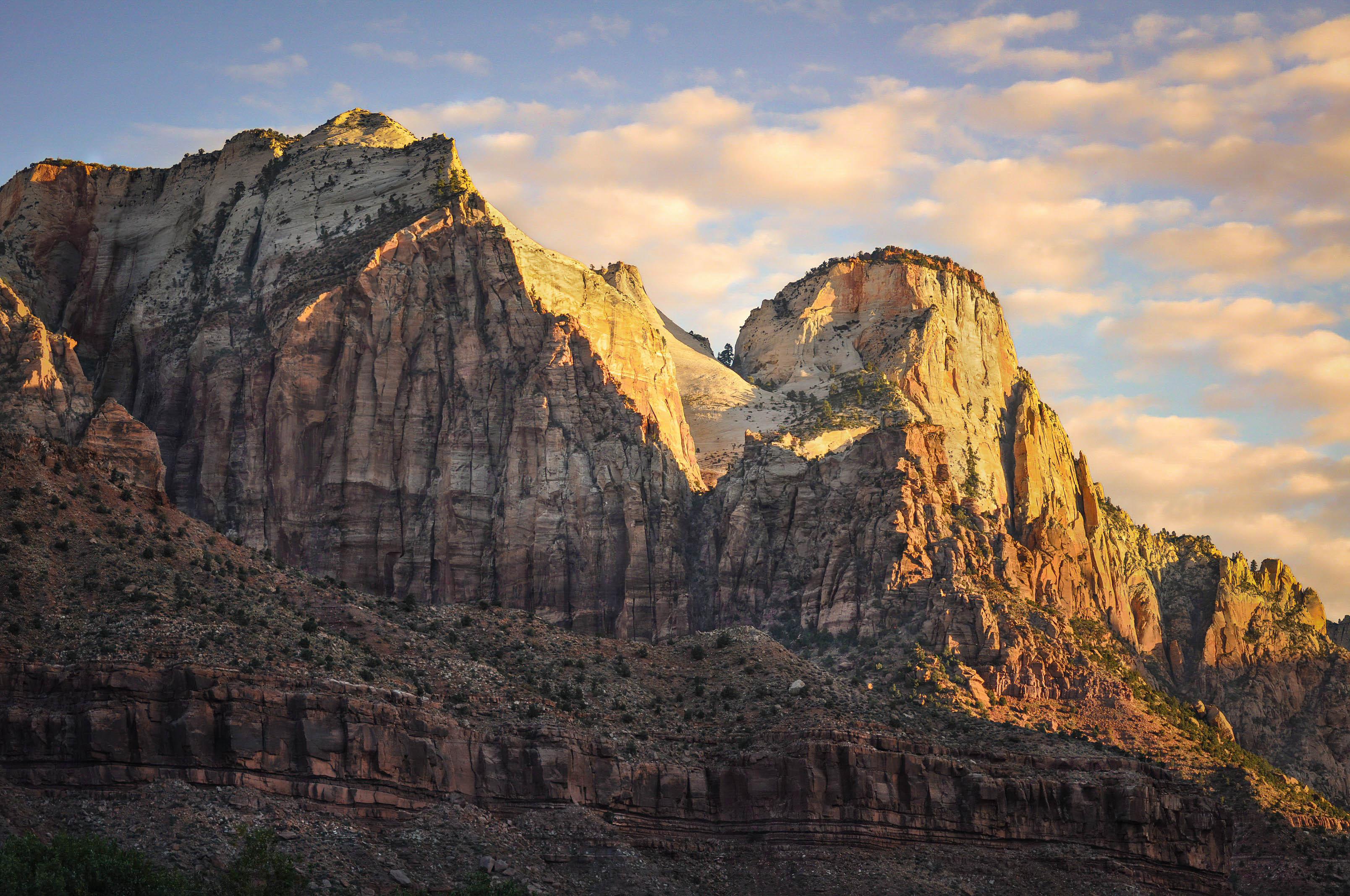 Sunrise on the Great White Throne in Zion. A cool October morning, cliffs glowing gold as the first light slides across the sandstone. Quiet, still, unforgettable.