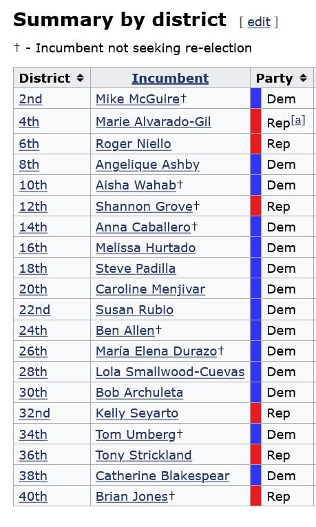 All 80 CA state assemblymembers are up for re-election this year, as are half of the 40 state senators. Open state senate seats for 2026 are listed below.