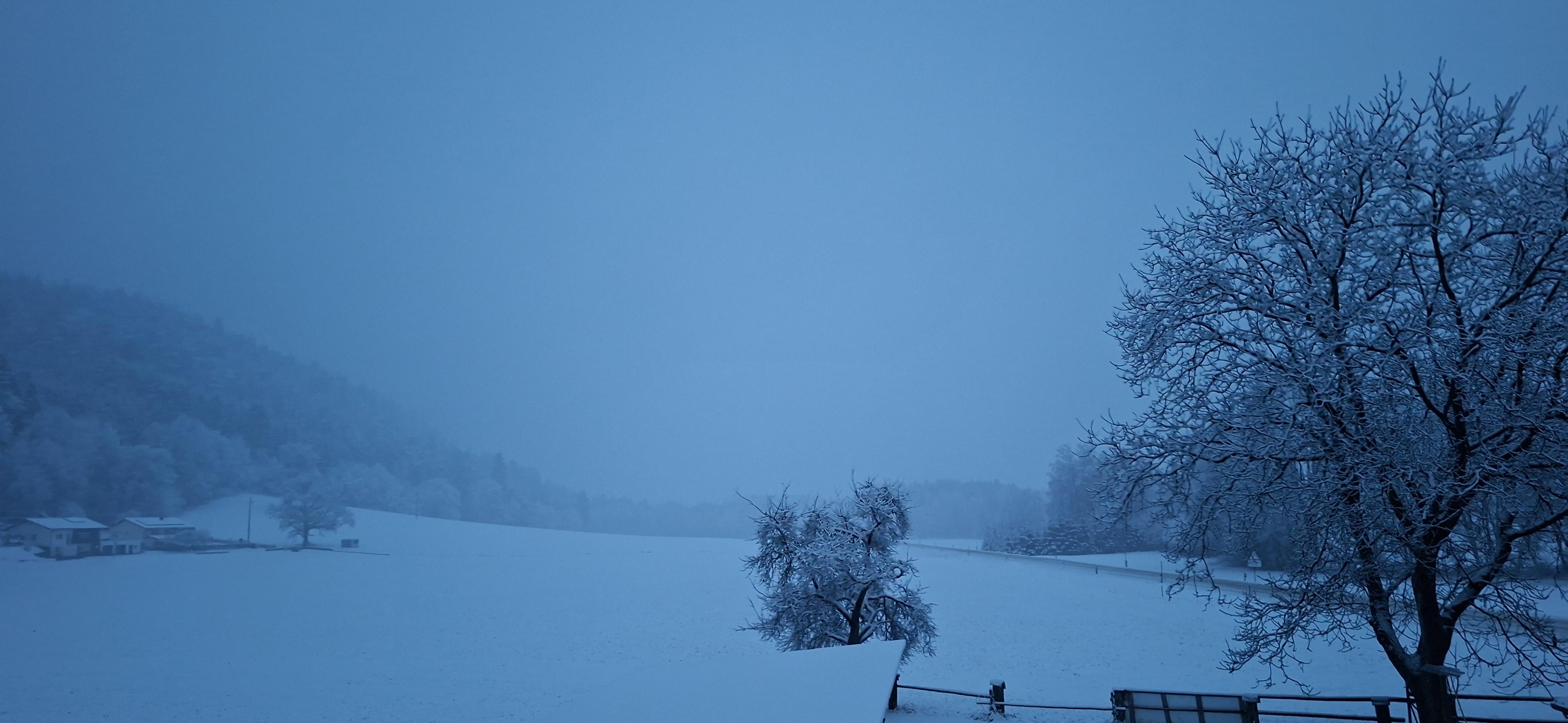 Truly magical experience, light and frozen fog on our winter walk last night. Simply stunning! -10℃, walking a few kilometers through knee-deep fresh powder snow, thick frozen fog drifting around us, diffusing the last light and creating surreal (almost cliché) colors...